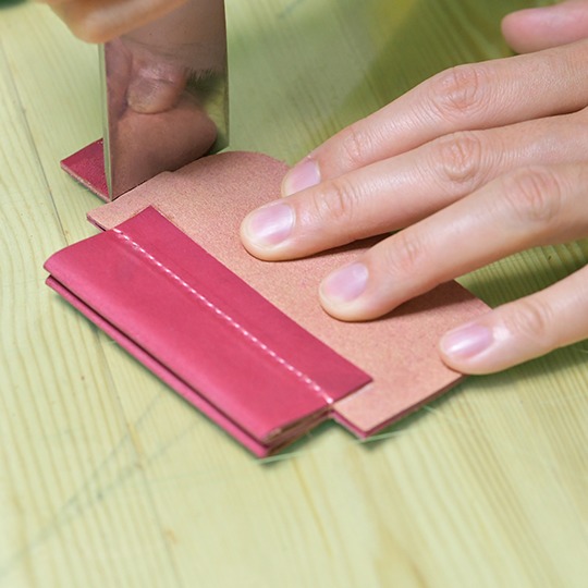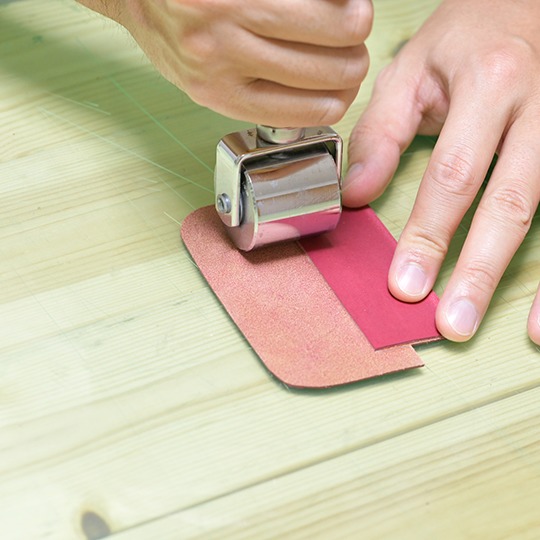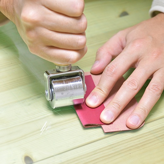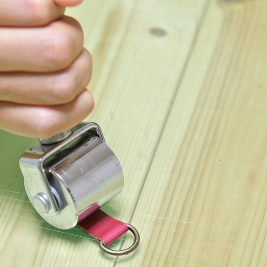 開閉バネを取り付ける部分にローラーをかけて折り目をつけます。