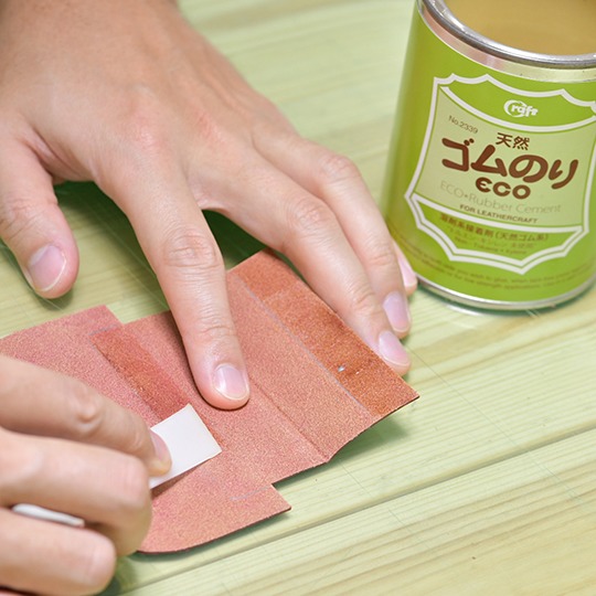 通常とは異なり表同士を接着するため裏表逆にした時に完成形になるように貼り付けていきます。また、貼り付けはゴムのりを使ってしっかりと固定します。