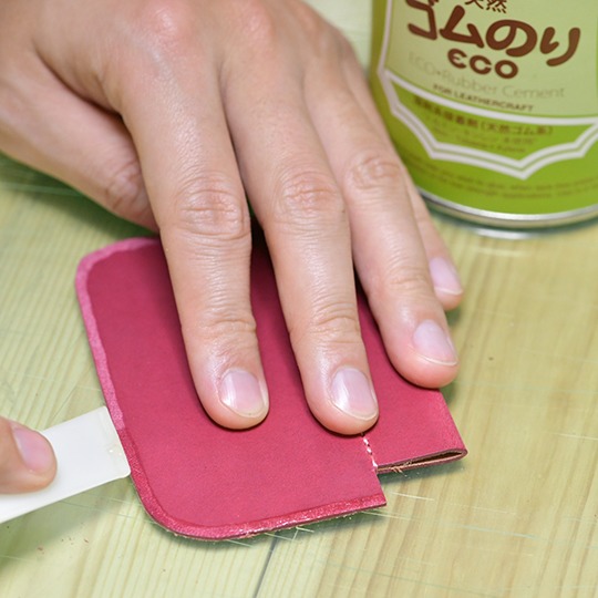 Dカンにタブをつけるため長方形のパーツを通して接着します。