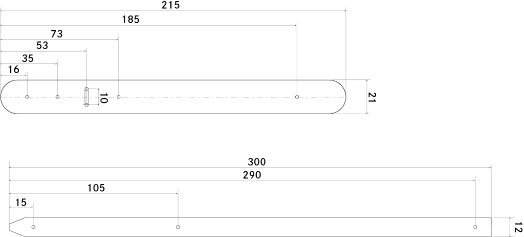 左の絵のような型紙を作ります。今回使用した革は余っているはぎれを使ったので1.6mmの厚みの革を使用しています。耐久性を考えてたら2mm程度がベストです。また、革を切り出す方向が大事なので、詳しくは過去の記事『パーツを切り出してみよう(その1)』を参考にしてください。