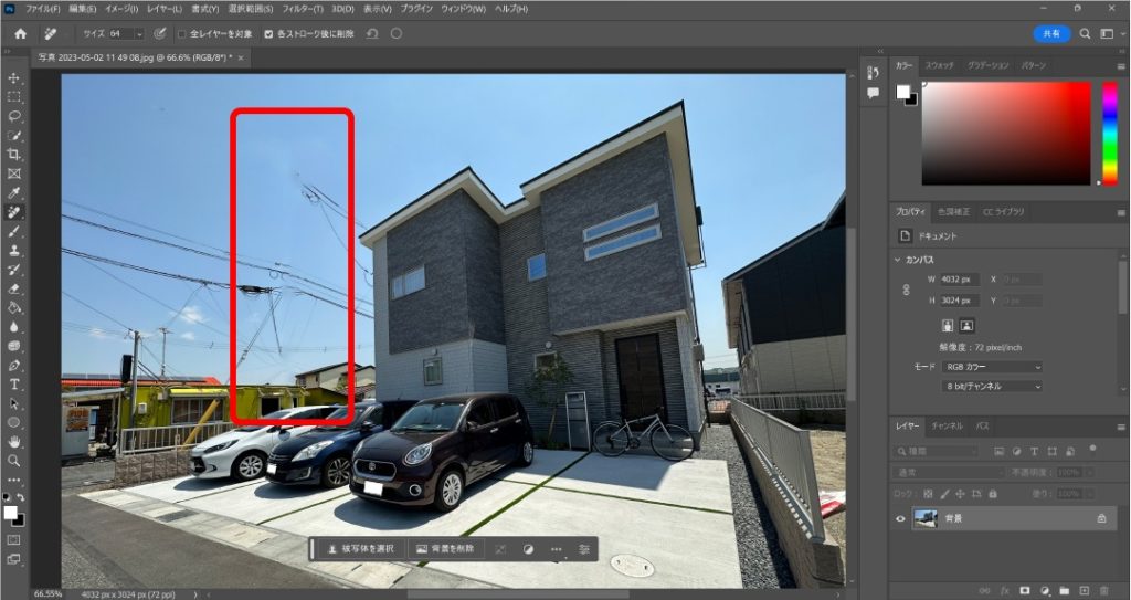 【Photoshop】写真の中の電線を綺麗に消す方法